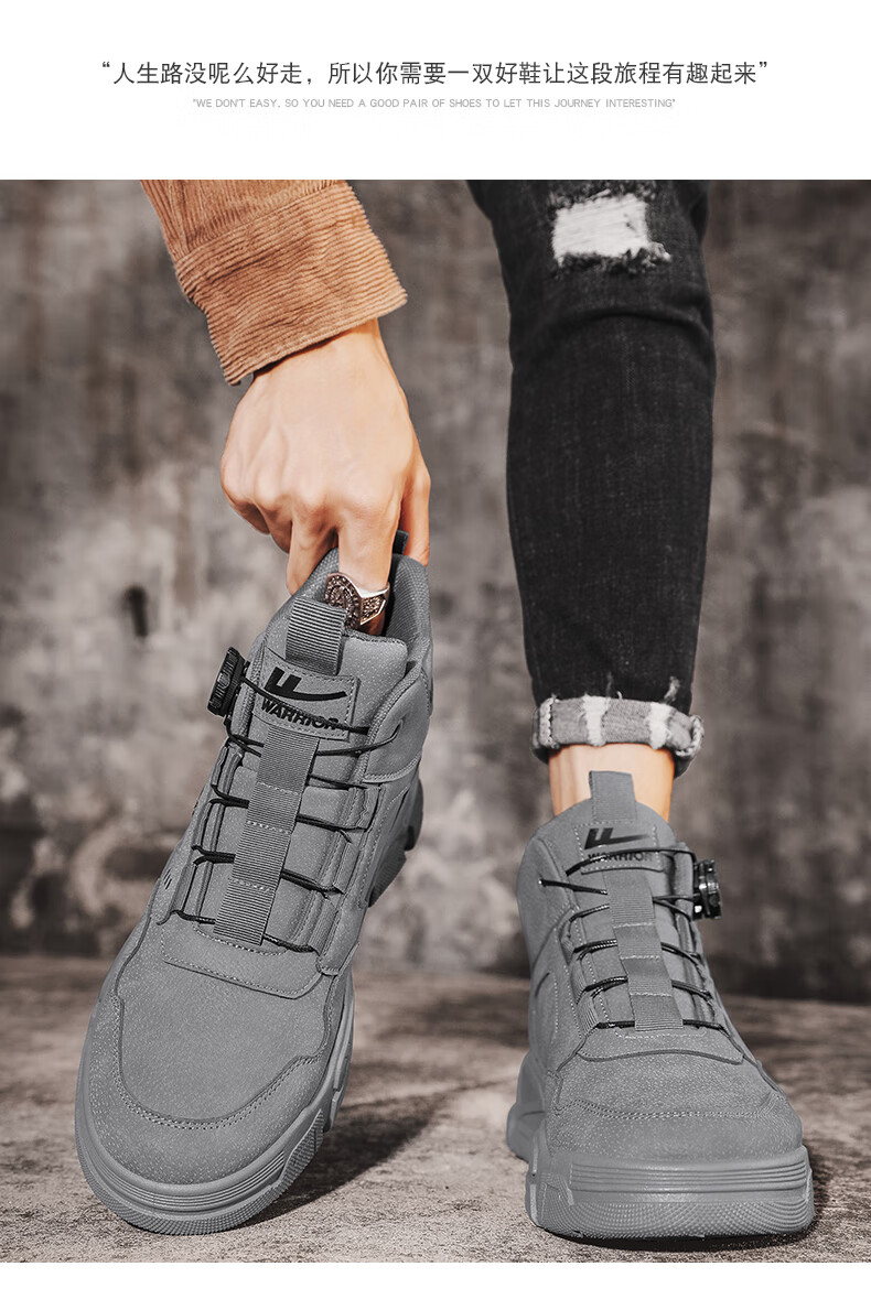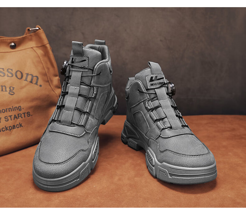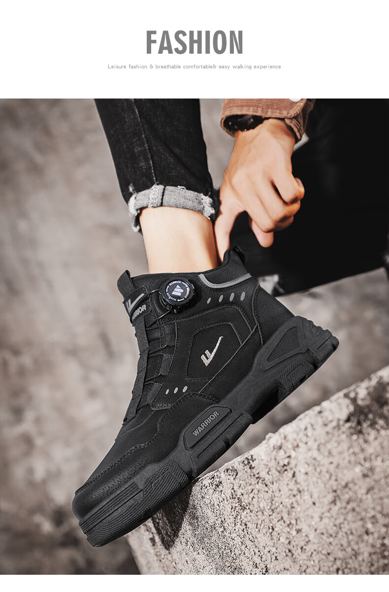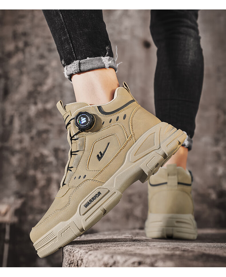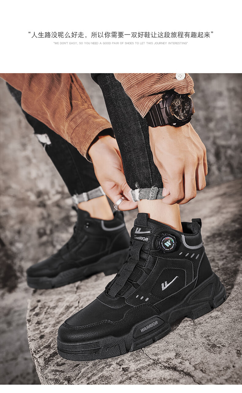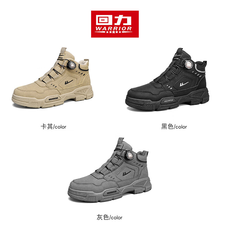 回力男鞋秋冬季新款男士马丁靴复古工装鞋高帮户外登山鞋男款休闲鞋子 黑色 41