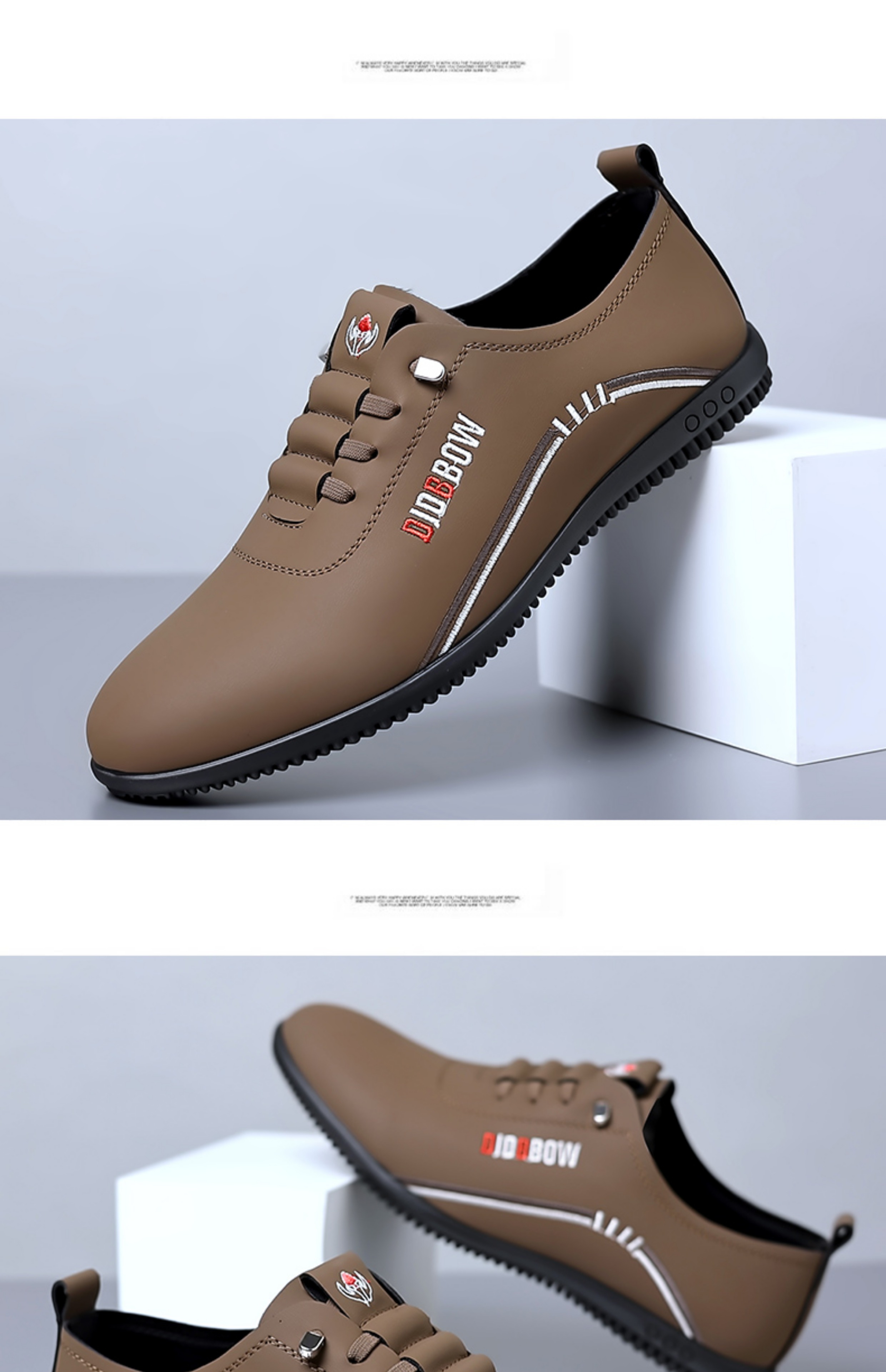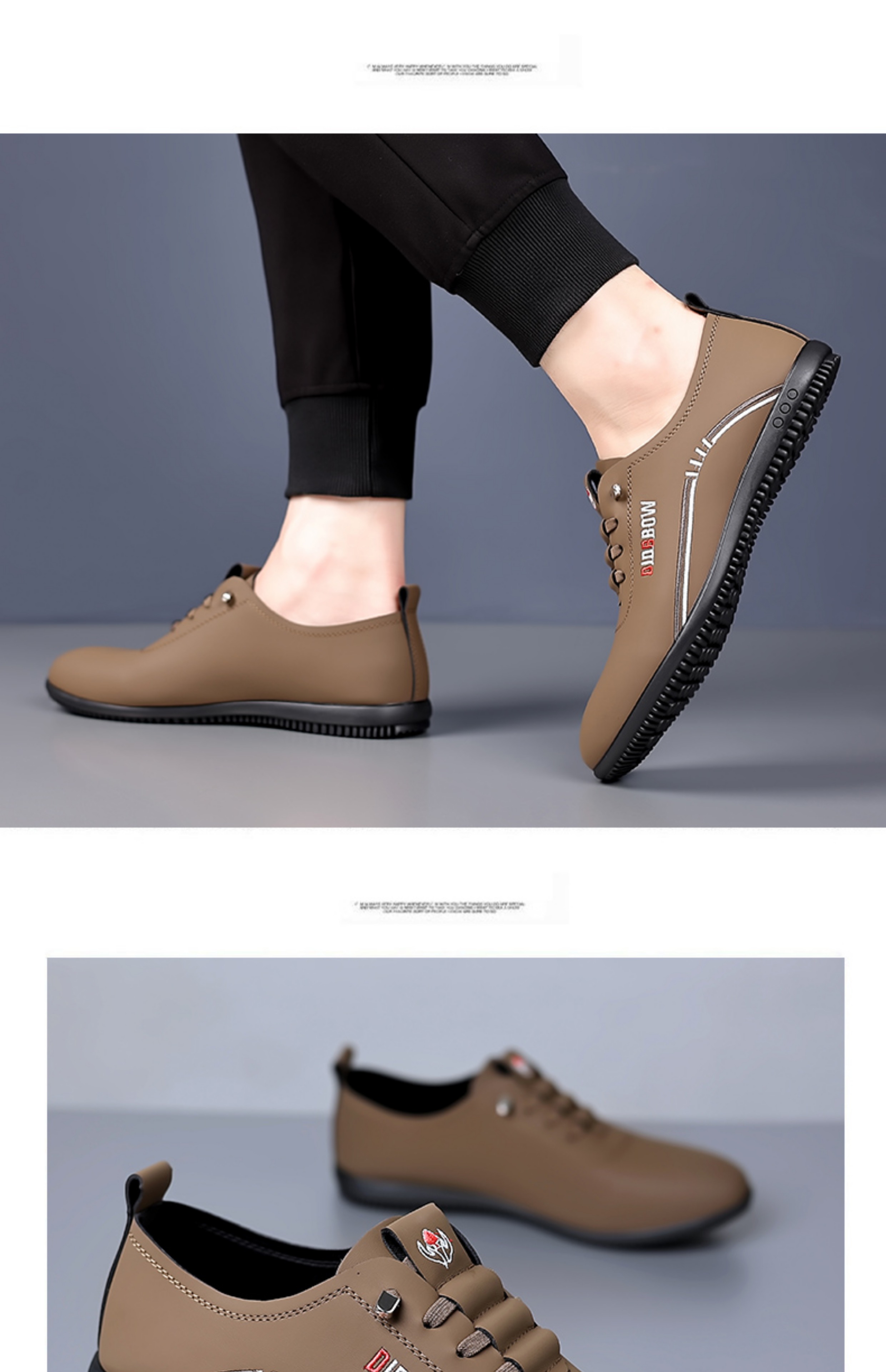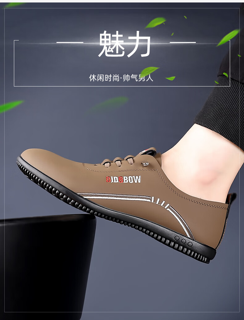 100%全牛皮星头啄木鸟男鞋2024男士真皮运动休闲透气软底驾车鞋男 6888棕色 42