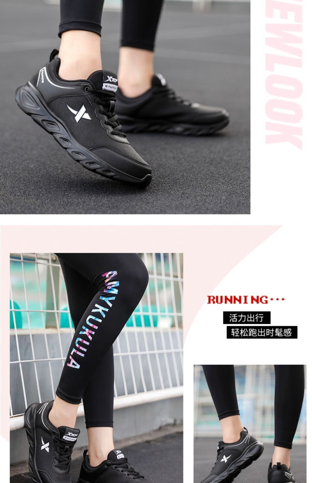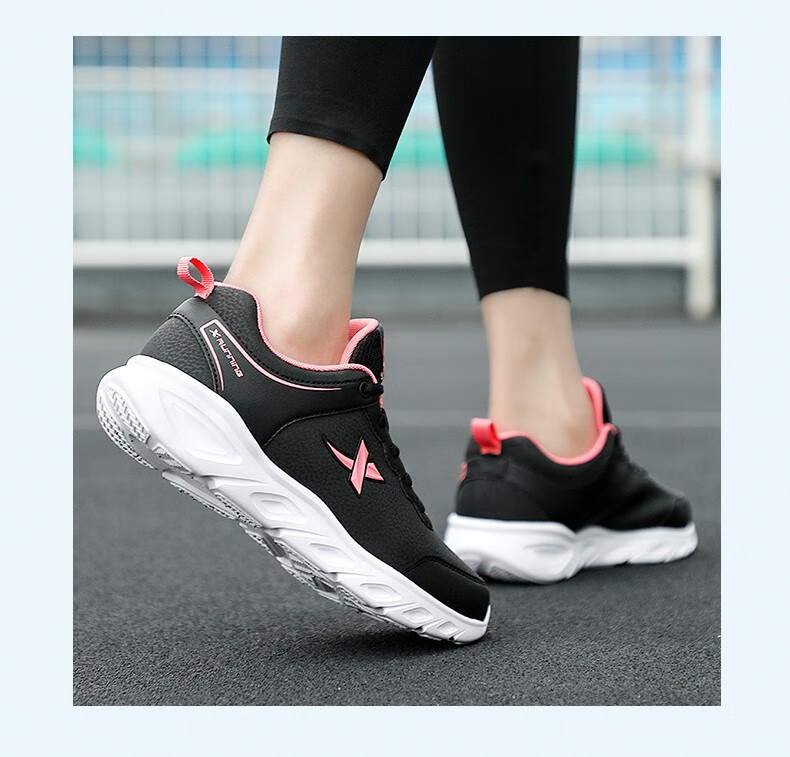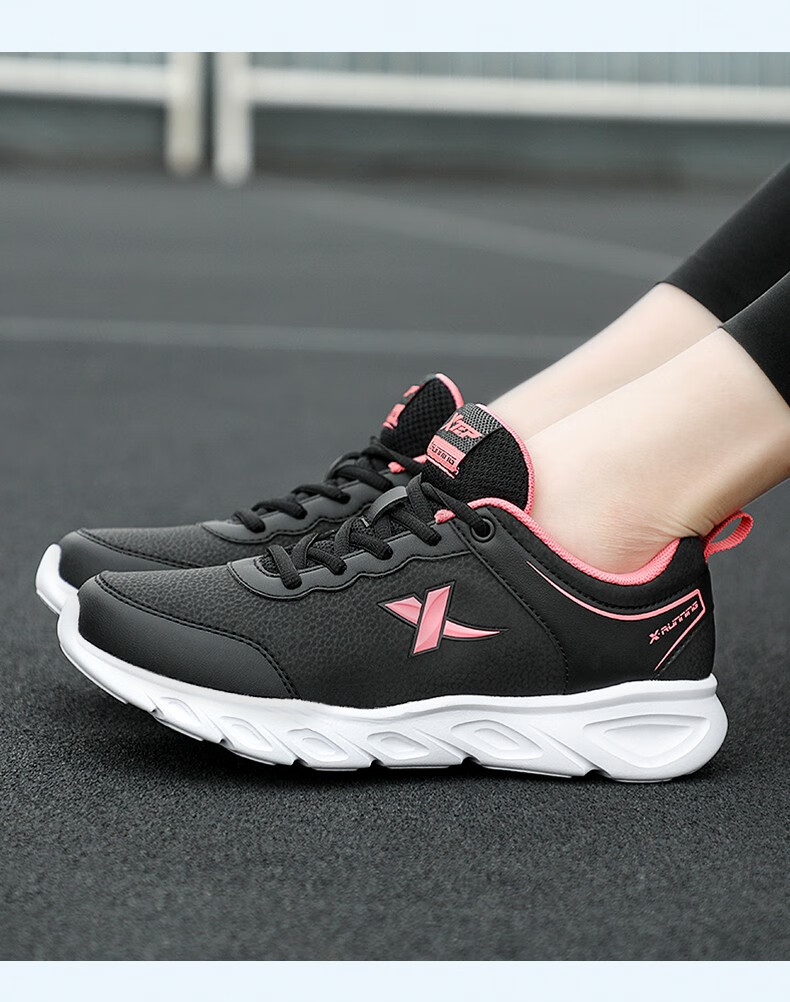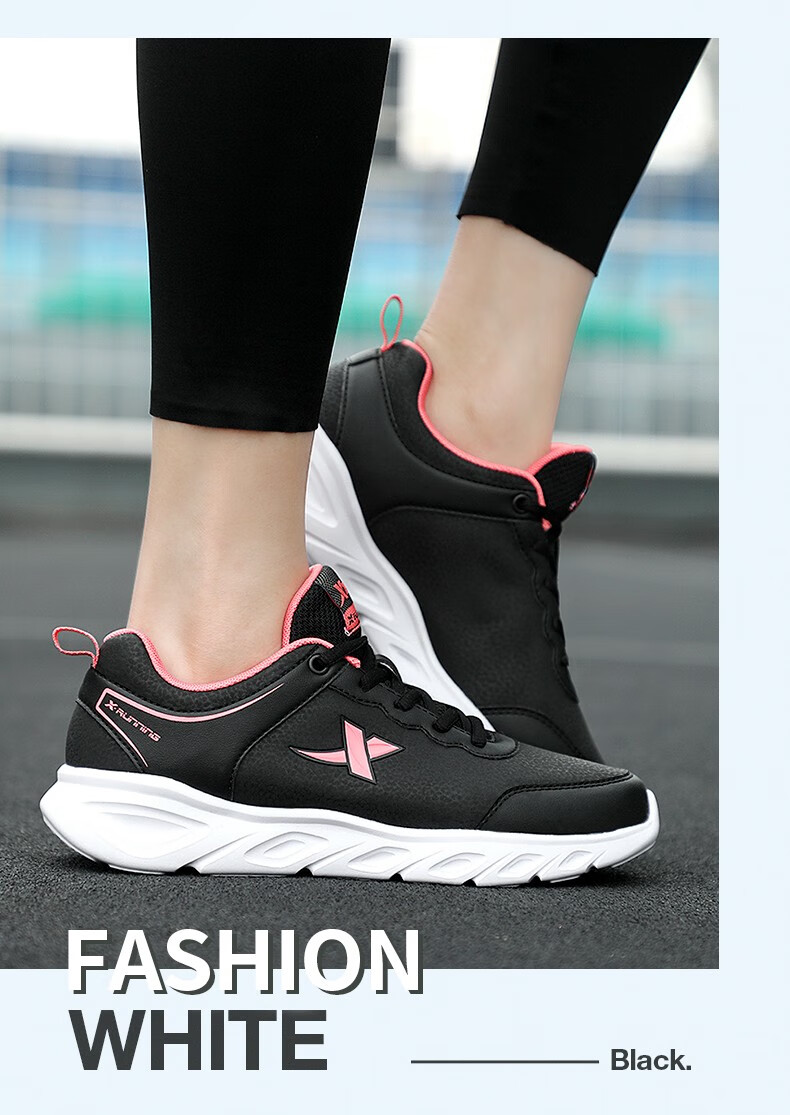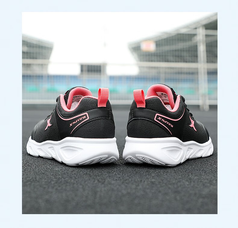 特步女鞋运动鞋秋冬款休闲鞋子轻便基础减震皮面防水软底跑步鞋女 6667黑粉红【推荐】 38