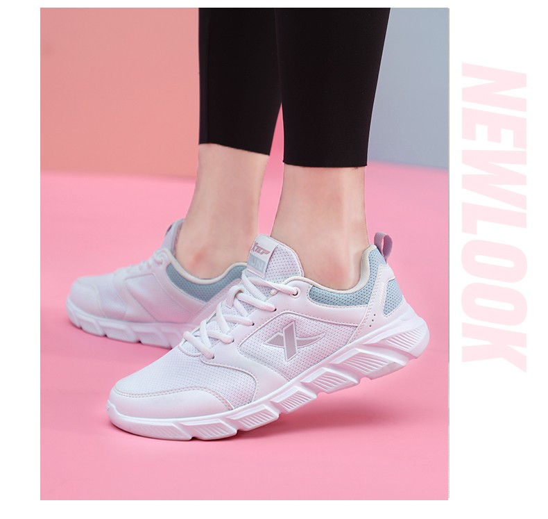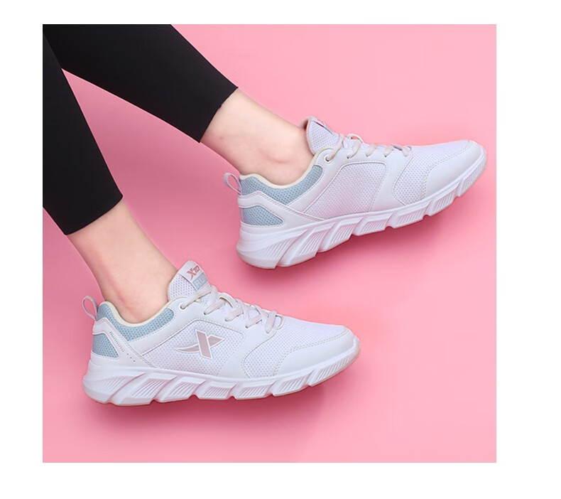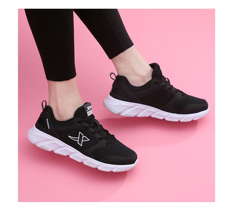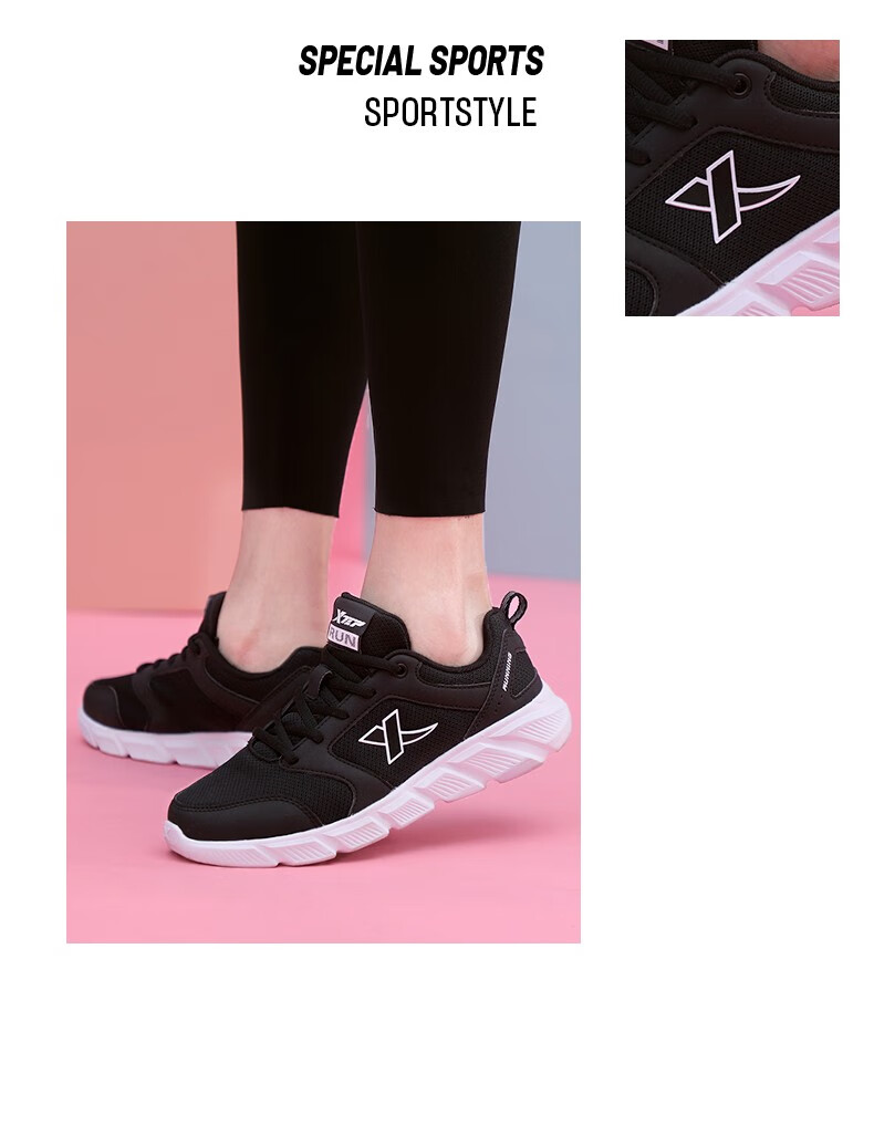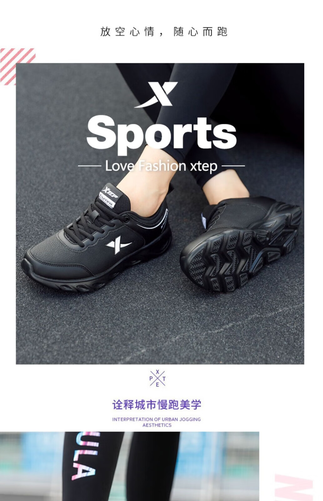 特步女鞋运动鞋秋冬款休闲鞋子轻便基础减震皮面防水软底跑步鞋女 6667黑粉红【推荐】 38