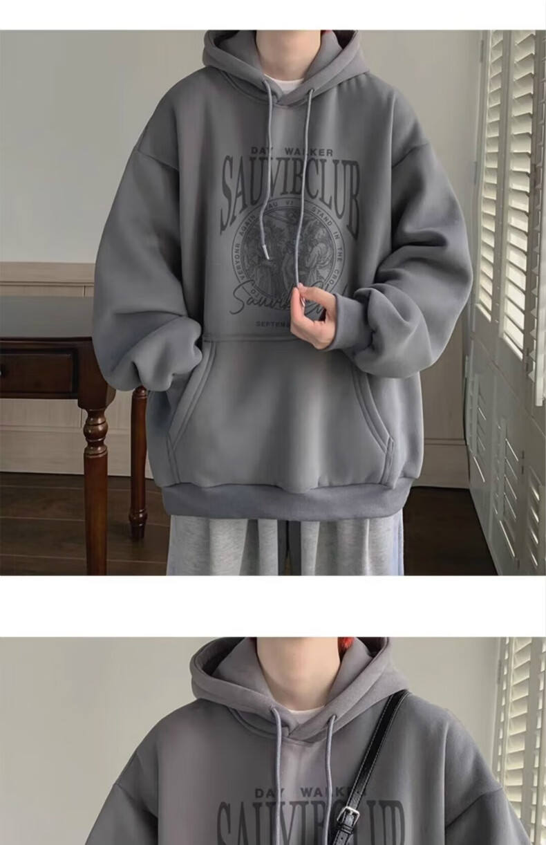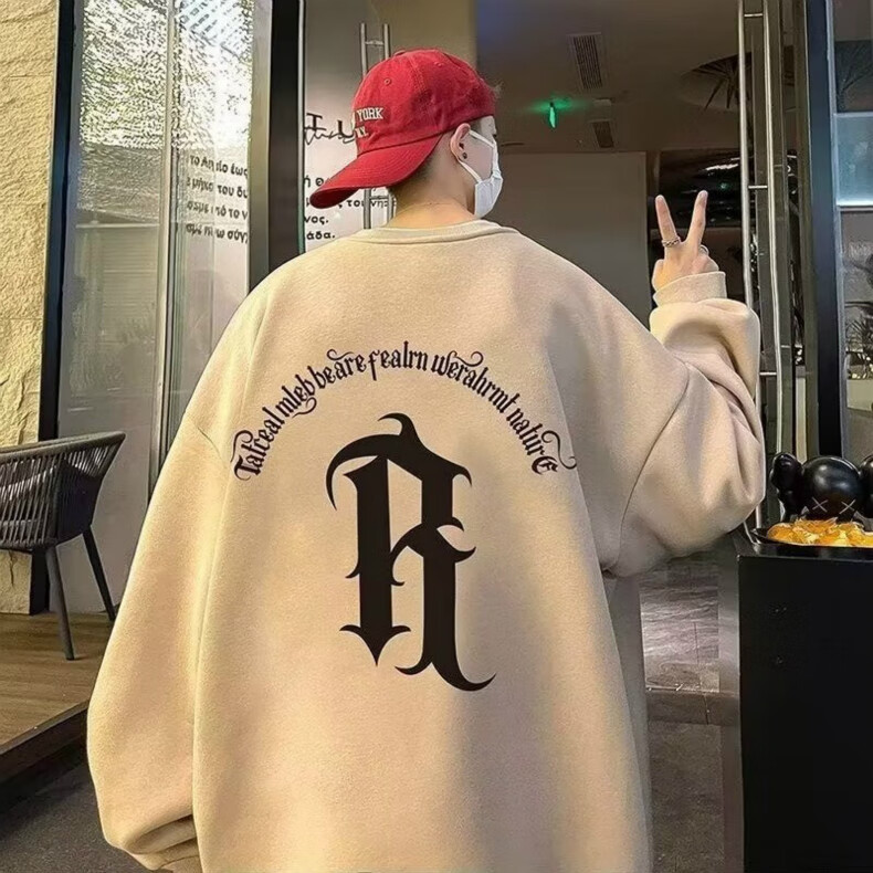 南极人卫衣男秋季美式复古男装宽松上衣长袖T恤冬季加绒加厚即墨衣服 224杏色【春秋款】 XL【建议体重125-145斤】