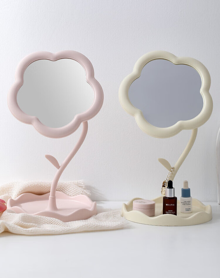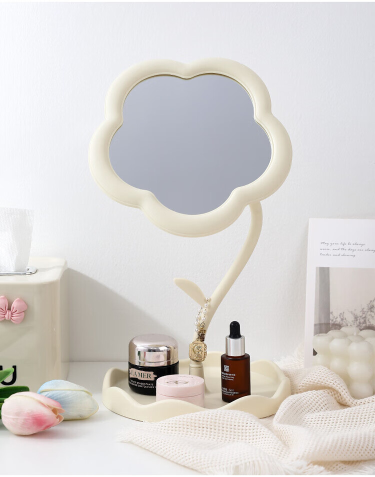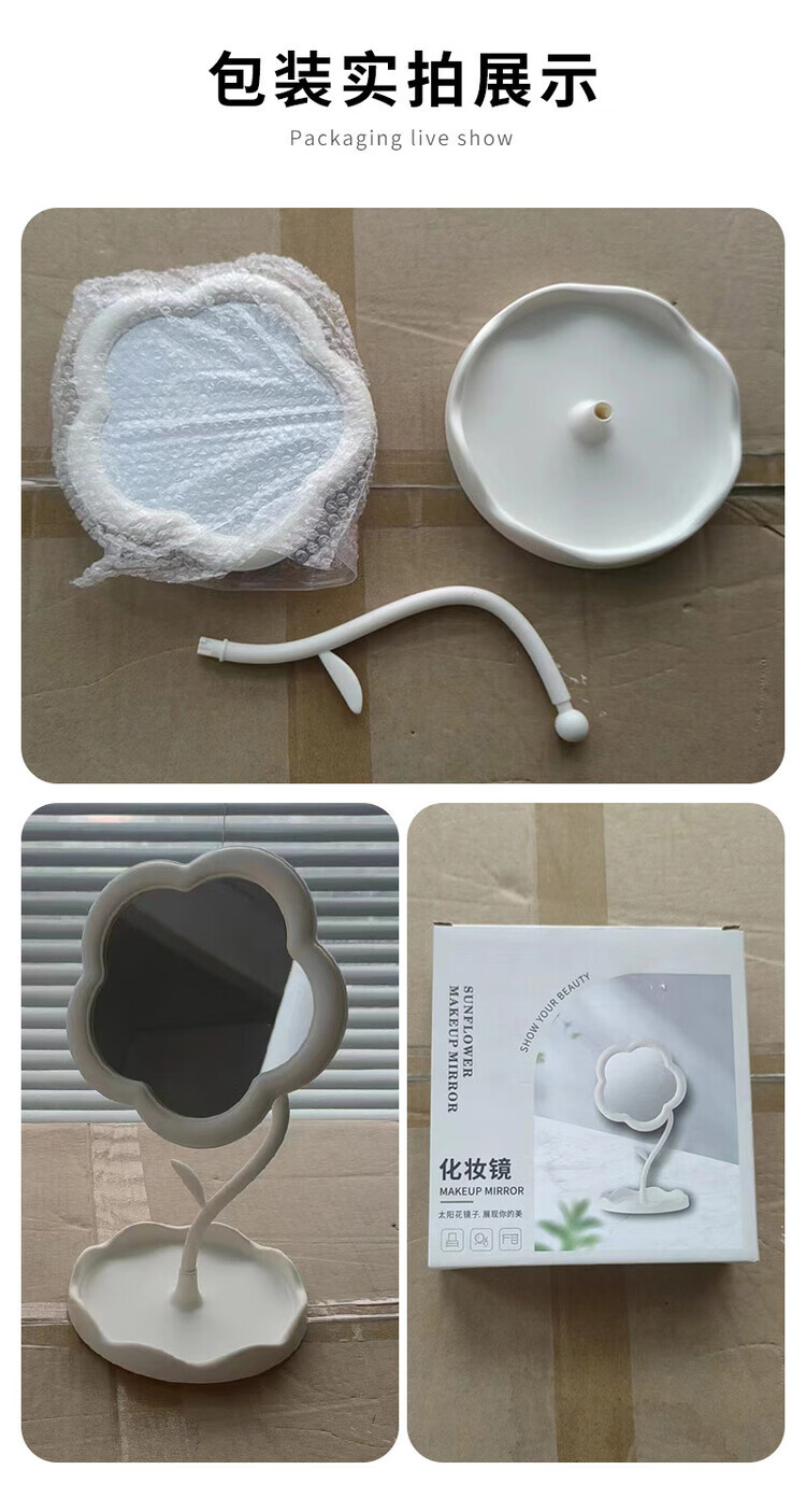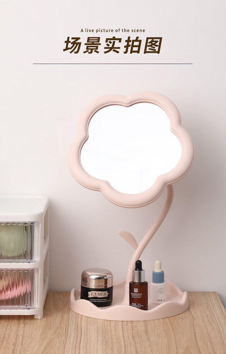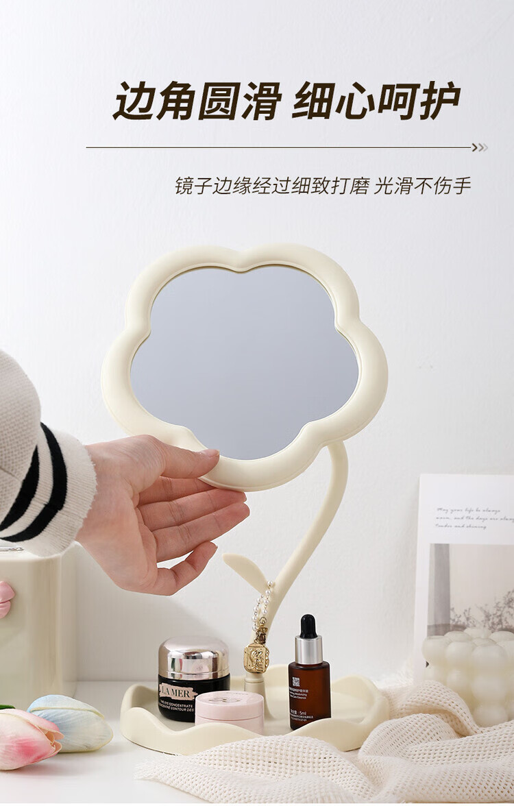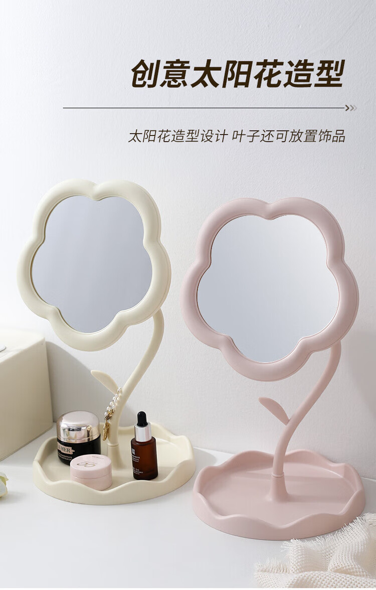 梳妆台化妆镜桌面太阳花镜子便携手持收纳新款网红 【颜色随机】360旋转升级新款
