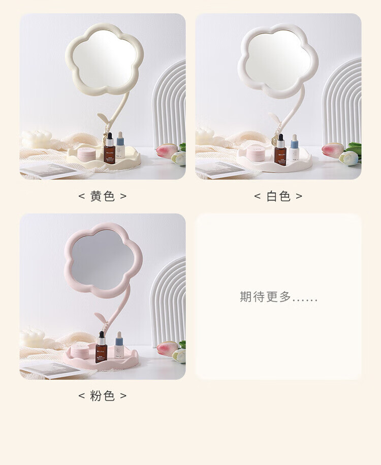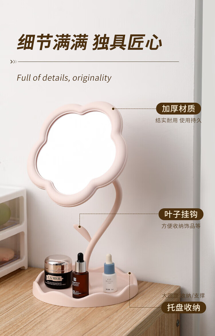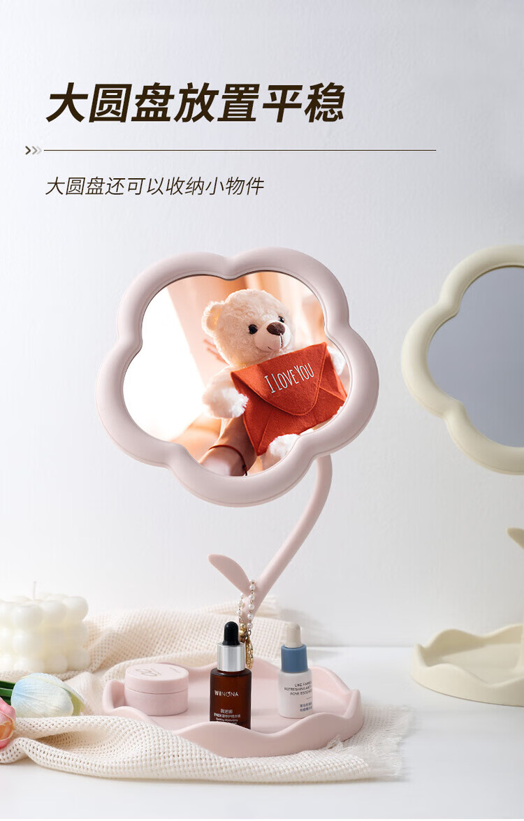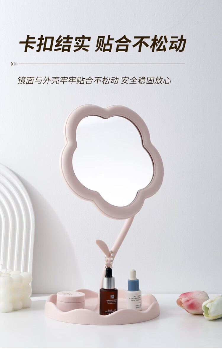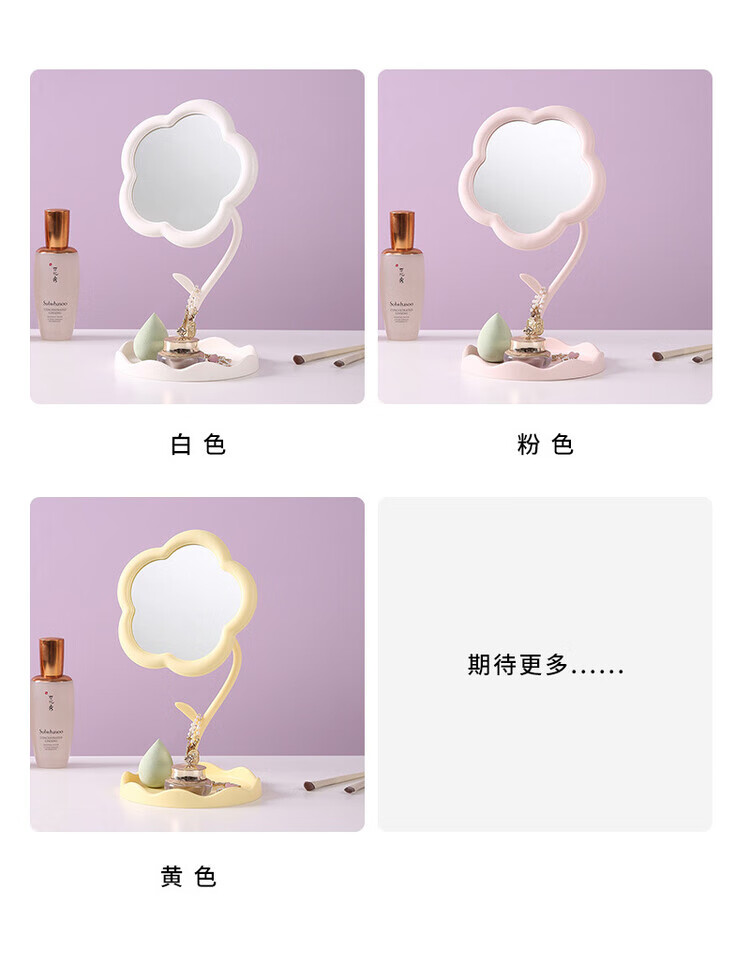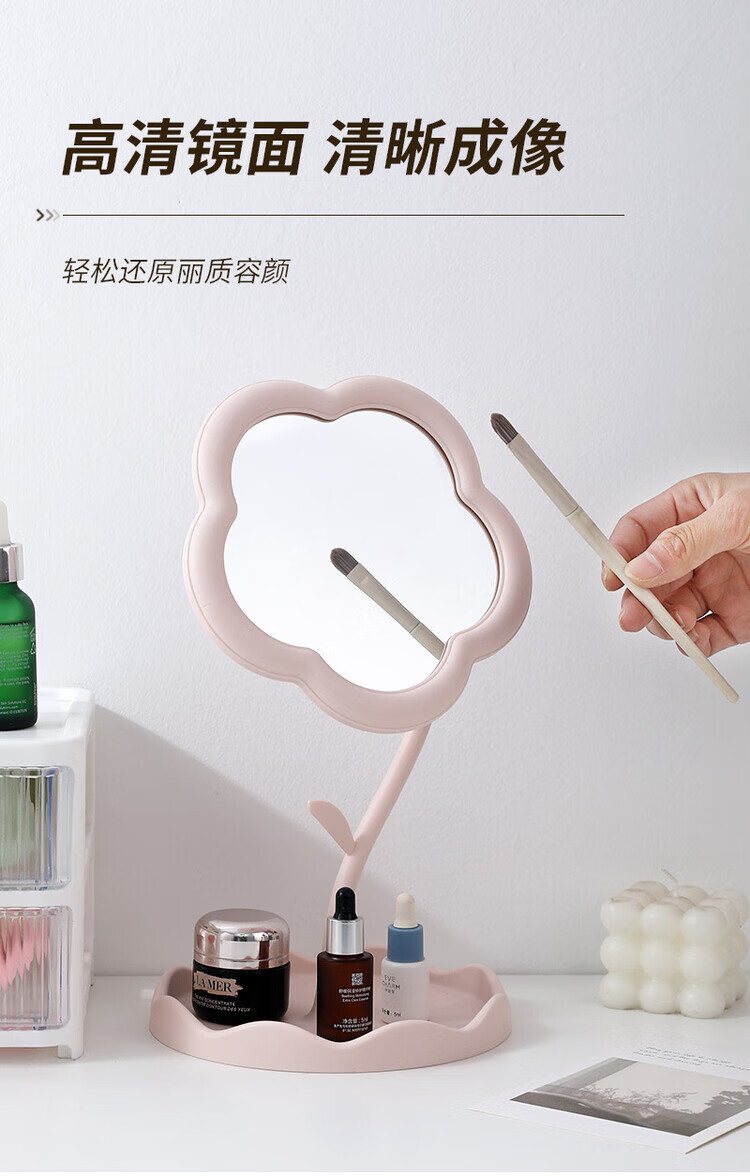 梳妆台化妆镜桌面太阳花镜子便携手持收纳新款网红 【颜色随机】360旋转升级新款